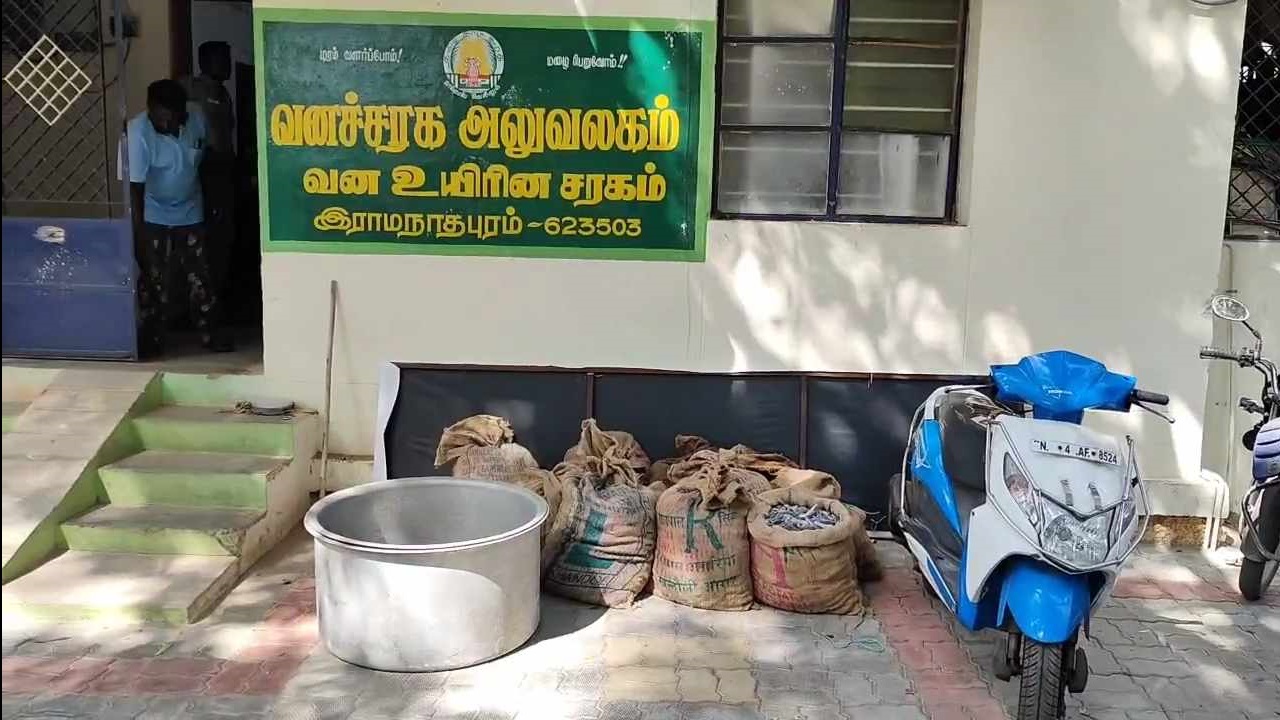 மேலும் பறிமுதல் செய்யப்பட்ட கடல் அட்டை மற்றும் இருசக்கர வாகனம், கைது செய்யப்பட்ட நபர் உள்ளிட்ட அனைத்தையும் மேலதிக விசாரணைக்காக ராமநாதபுரம் வனத்துறை அலுவலகத்தில் ஒப்படைத்தனர்.