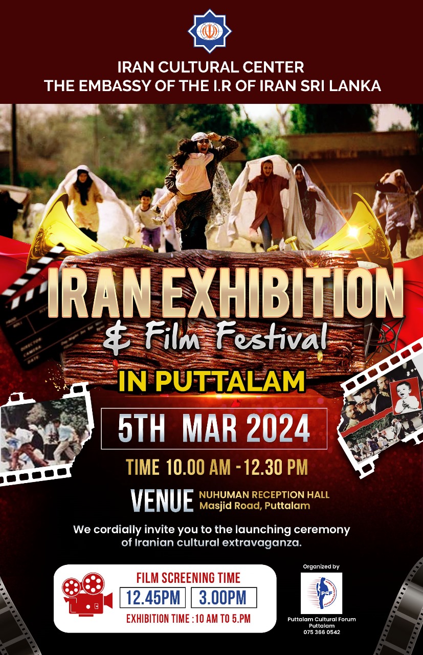 ஈரான் கலாச்சார நிகழ்வுகள் எதிர்வரும் செவ்வாக்கிழமை (மார்ச் 05) காலை 10மணி முதல் புத்தளம் நுஹ்மான் மண்டபத்தில் நடைபெற ஏற்பாடாகியுள்ளது.