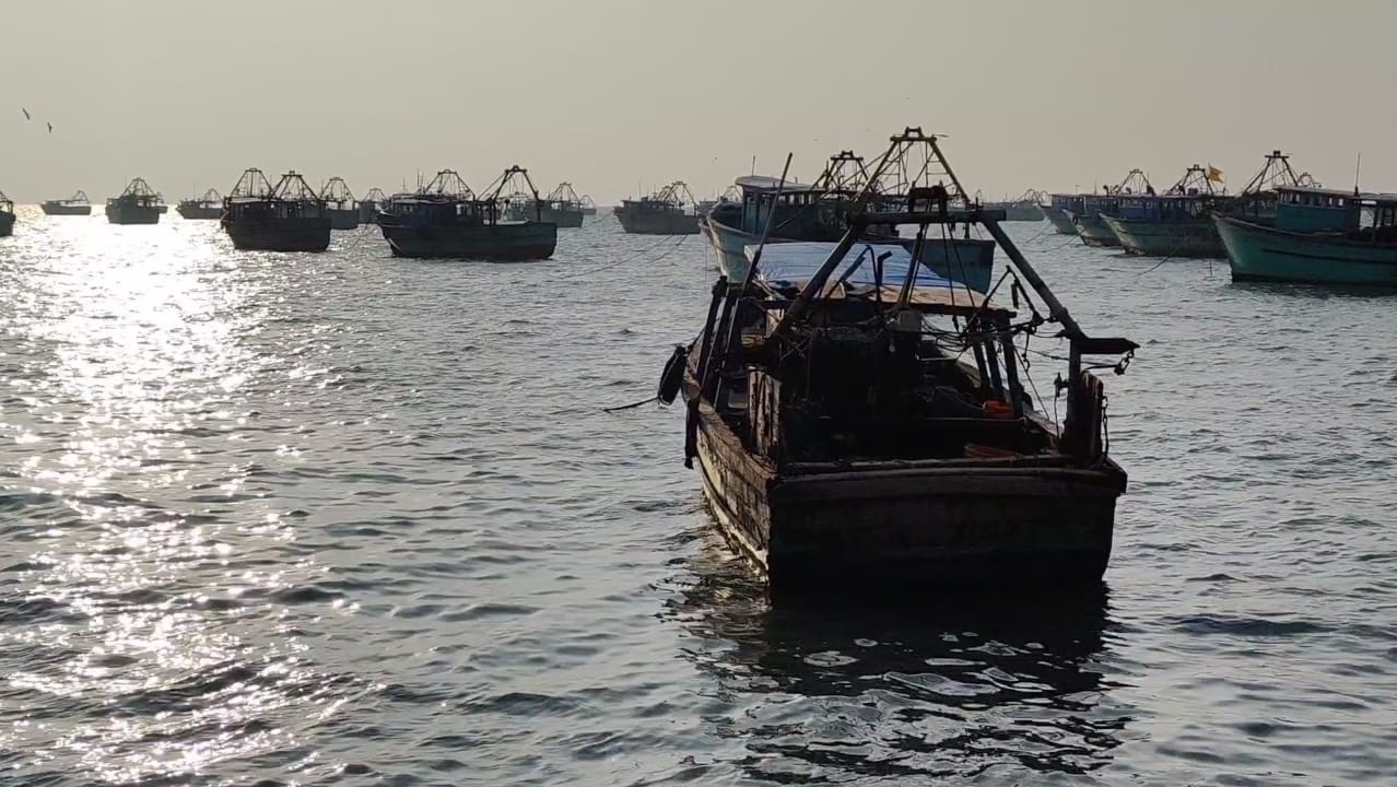 வேலை நிறுத்த போராட்டம் காரணமாக ராமேஸ்வரம் மீன் பிடித் துறைமுகத்தில் சுமார் 800 க்கும் மேற்பட்ட விசைப்படகுகள் மீன் பிடிக்க கடலுக்கு செல்லாமல் கடலில் நங்கூரமிட்டு நிறுத்தப்பட்டுள்ளது .