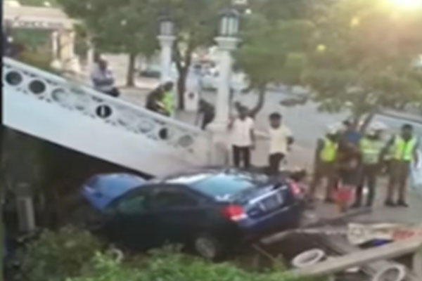 இன்று அதிகாலை கட்டிடத்தின் நுழைவாயிலுக்கு அருகில் உள்ள சீமெந்து சுவரில் கார் மோதி விபத்துக்குள்ளானதாக பொலிஸார் தெரிவித்தனர்.