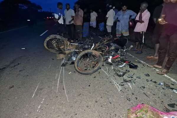 மாங்குளத்திலிருந்து மல்லாவி நோக்கி வந்த மோட்டார் சைக்கிளும் மல்லாவி பகுதியிலிருந்து மாங்குளம் நோக்கிச் சென்று கொண்டிருந்த மோட்டார் சைக்கிளும் நேருக்கு நேர் மோதிக்கொண்டதாலேயே இந்த விபத்து இடம்பெற்றுள்ளது.