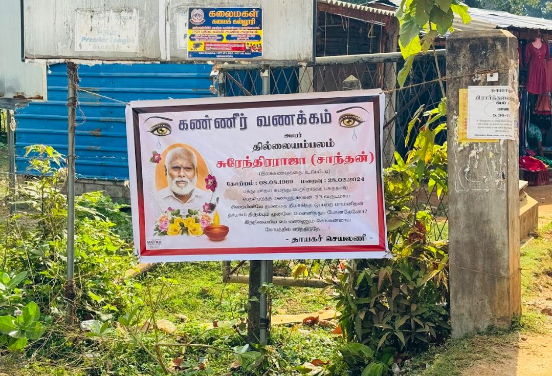 புதுக்குடியிருப்பில் சாந்தனின் மறைவிற்கு அஞ்சலி பதாதைகள்